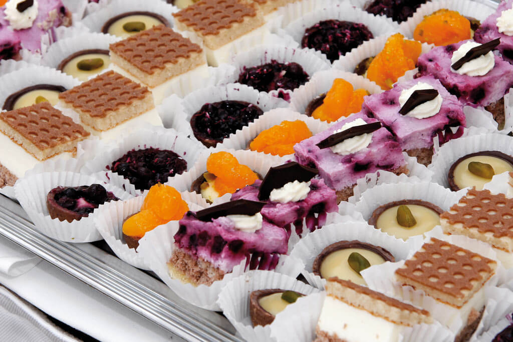 Bei der Kreation köstlicher Back- und Patisseriewaren legen wir besonders viel Wert auf Frische, erlesene Zutaten und maximalen Genuss. Das Sortiment reicht von Blechkuchen über Obst- und Sahnetorten bis zu außergewöhnlichen Petit Fours. Selbstverständlich bekommen Sie bei uns auch leckere Klassiker wie Pfannkuchen oder Makronentörtchen. Dass in den exquisiten Kuchen, Torten und Plätzchen viel Liebe steckt kann man fühlen, sehen und natürlich schmecken. Alle Leckereien werden durch unsere Mitarbeiter sorgfältig von Hand hergestellt.