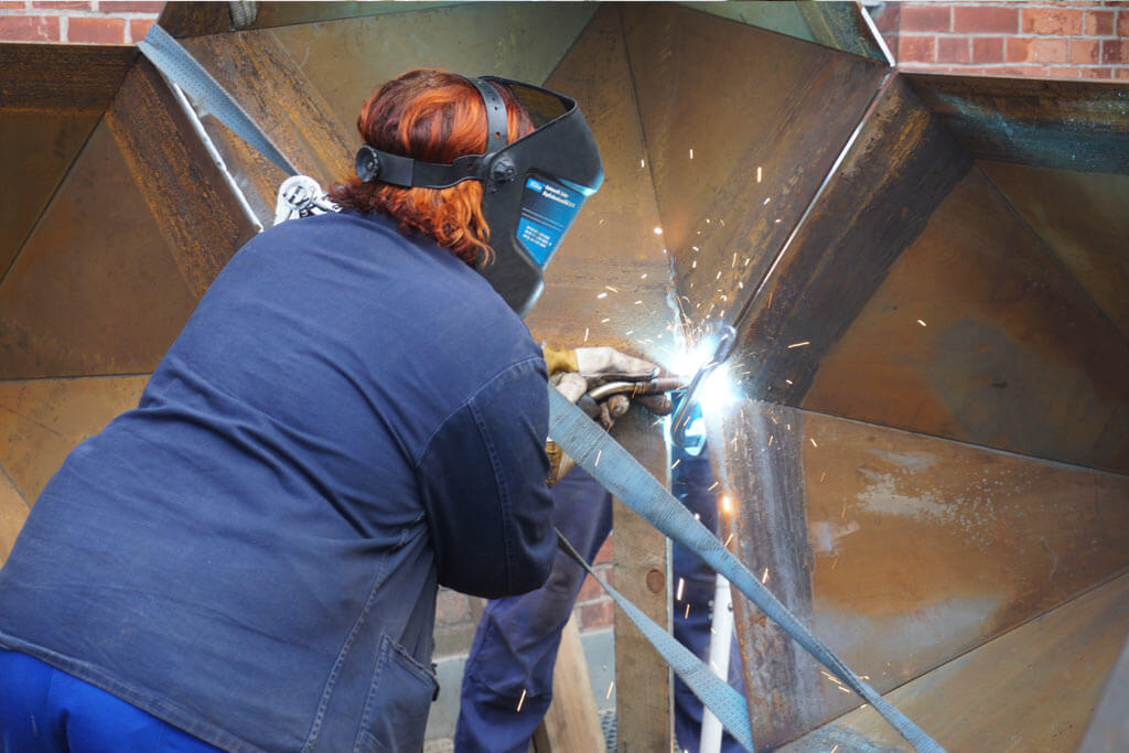 Die Fertigung und Montage von Stahlkonstruktionen bis zu einem Gesamtgewicht von 2,5 t und Einzelteilen von bis zu 250 kg gehört ebenfalls in unser Repertoire.